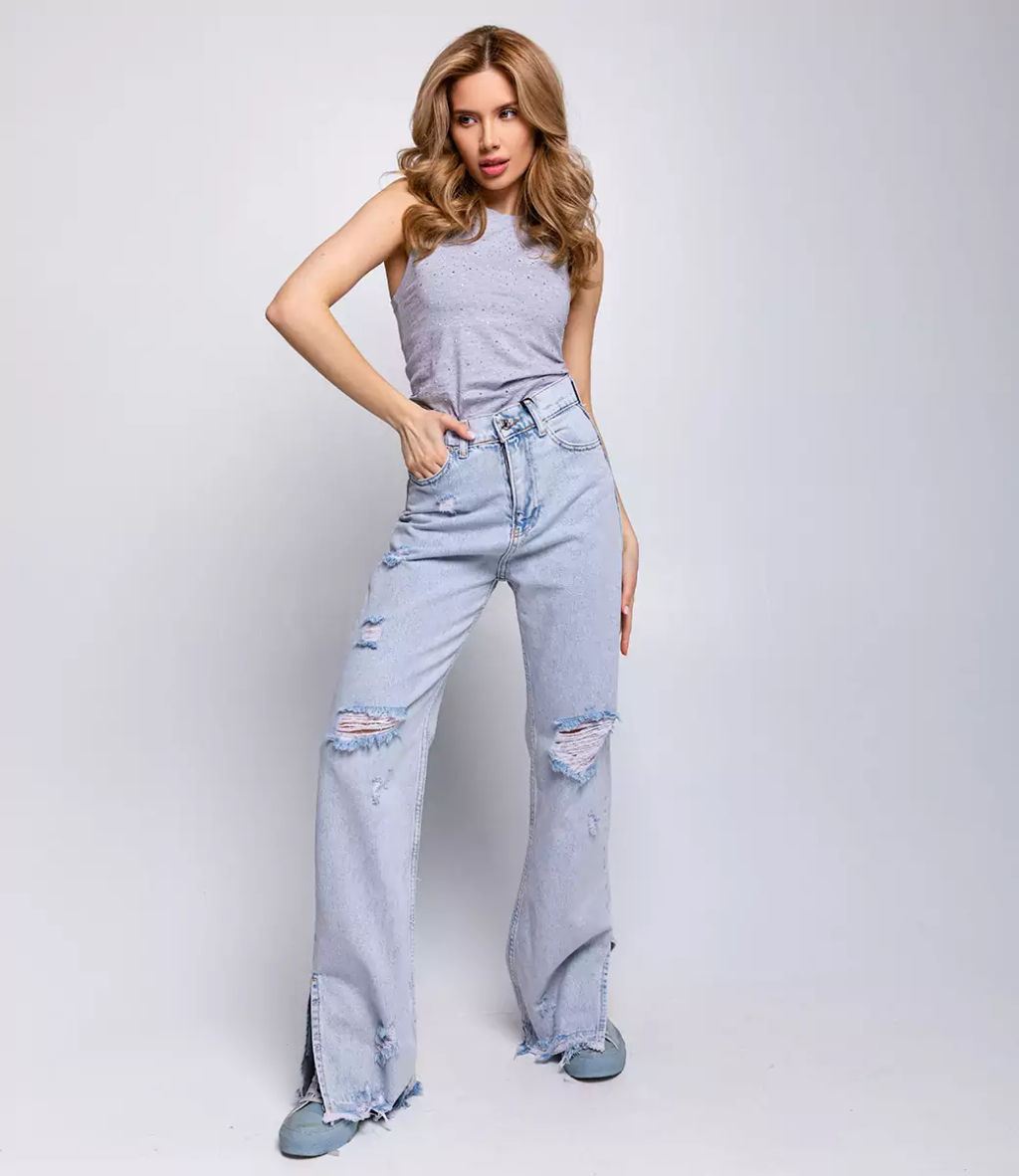 Для изготовления выбрана ткань из 100% хлопка, которая выделяется отличным качеством. Даже после многих стирок джинсы не потеряют своей первоначальной привлекательности. Вы будете их носить с большим удовольствием и радостью. Обратите внимание на декоративные разрезы и потертости, которые добавляют джинсам стильности. Чтобы вы были уверены в размере, мы предоставили на сайте таблицу. Воспользовавшись ею, вы сможете сами сделать мерки и убедиться. Предложенная нами цена является доступной и адекватной. Не откажите себе в удовольствии быть неповторимой и элегантной в этих джинсах!­