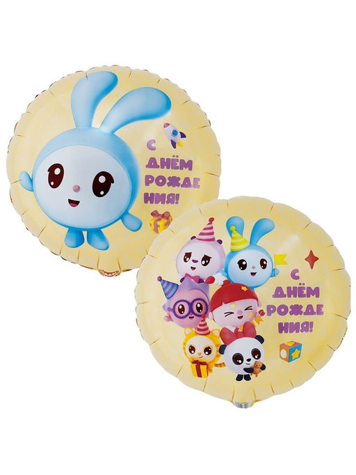 Цена за 2 шт. Воздушный шар фольгированный 18" круг "Малышарики" инд.уп.
