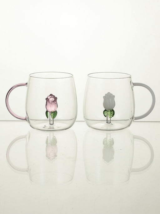Набор кружек стеклянных "Розочка" розовая/белая, 2шт, 400 мл, р-р 1й шт 9х12,5х9 см