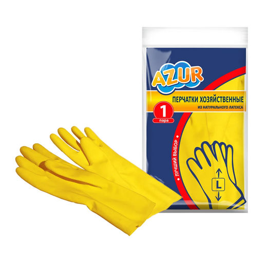 Универсальные хозяйственные перчатки AZUR из натурального латекса. Ребристая поверхность на ладони и пальцах предотвращает выскальзывание предметов из рук. Перчатки обеспечивают защиту кожи рук от воздействия воды и моющих средств. Изготовлены из прочного материала, имеют продолжительный срок службы.