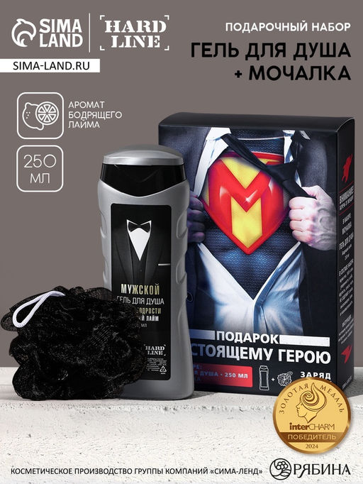 • Подарочный набор Настоящему герою, гель для душа 250 мл, аромат бодрящий лайм, мочалка