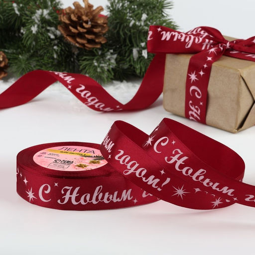 • Лента атласная «С Новым годом!», 25 мм, 23±1 м, красная