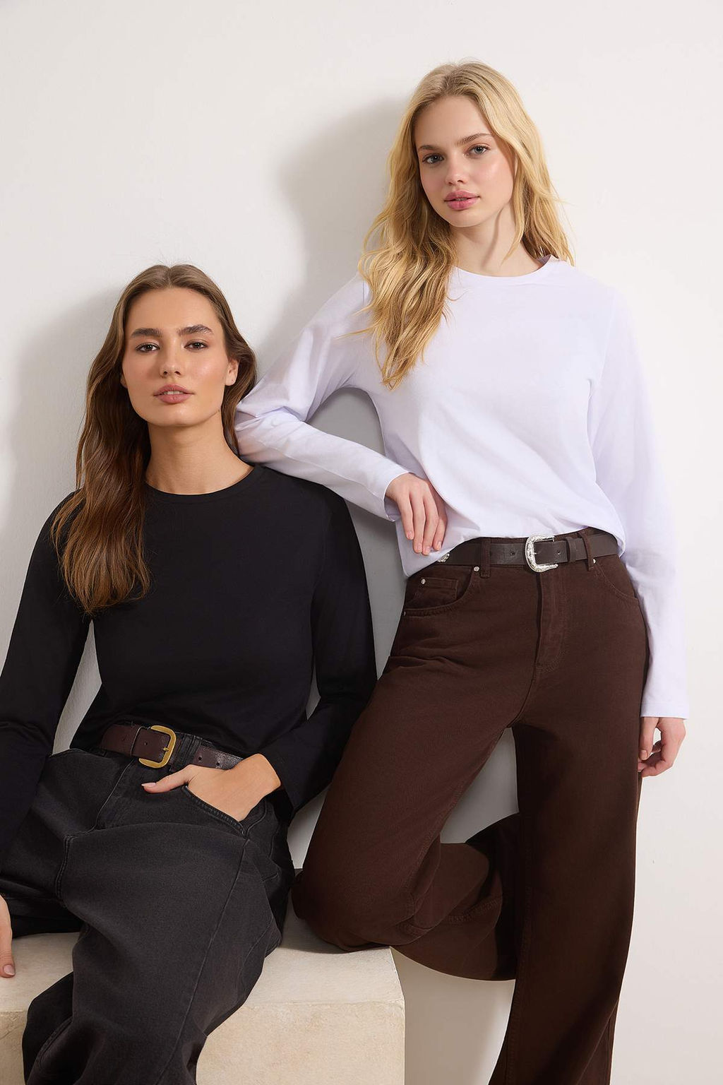 Siyah-Beyaz 2li Paket Bisiklet Yaka Regular/Normal Kesim Orme T-Shirt TWOAW25TS00001