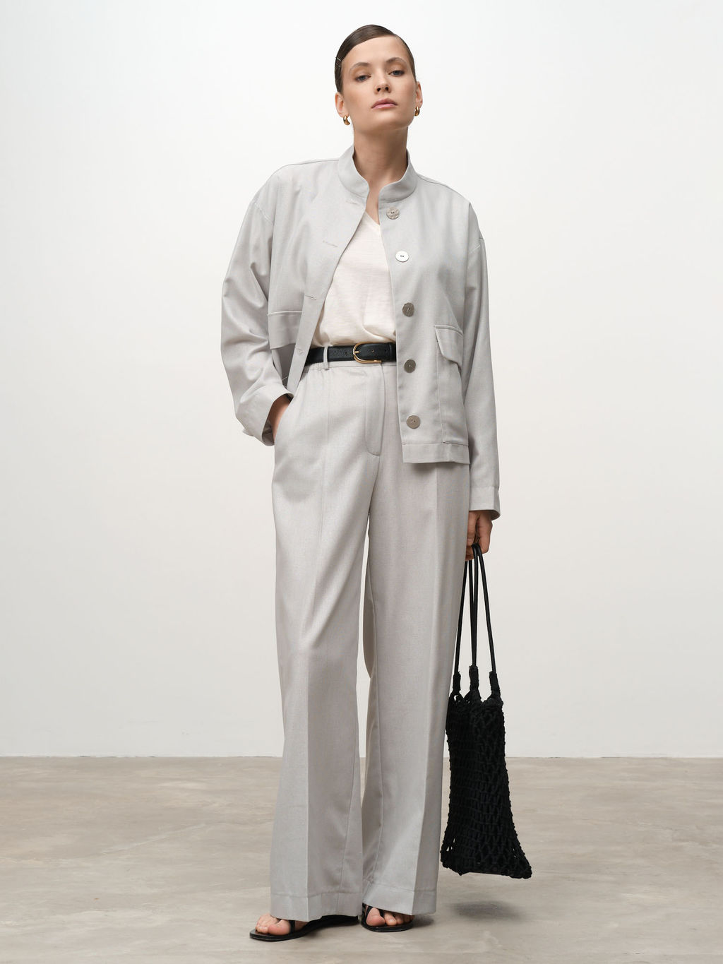 Бомбер в оттенке серебро это стильная альтернатива классическим базам. Лёгкий, натуральный и небанальный он станет главным акцентом твоего летнего гардероба.