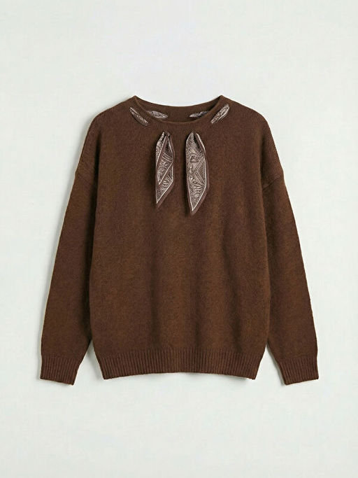 Bisiklet Yaka Fular Detayl? Kad?n Triko Kazak
