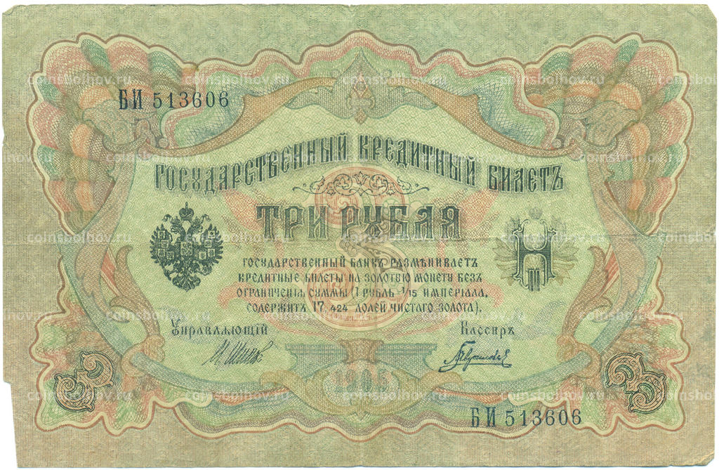 • Банкнота 3 рубля 1905 года Шипов / Гаврилов