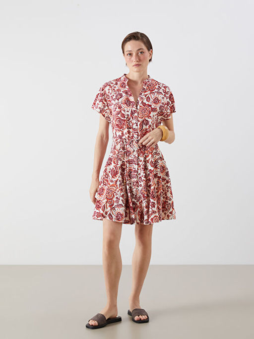 Ka??k Yaka ?i?ekli Pileli Elbise
