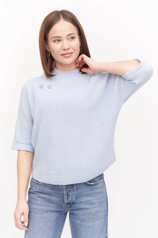 Джемпер женский вязаный прямого силуэта с воротом - полустойкой. Рукава цельнокроеные длинной 3/4 с отворотом. Джемпер выполнен структурной вязкой. Модная новинка сезона. Предназначен для использования в прохладное время года.