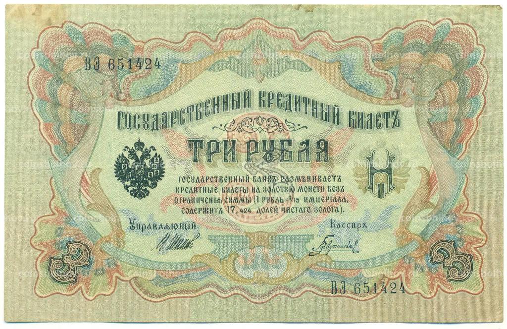 • Банкнота 3 рубля 1905 года Шипов / Гаврилов