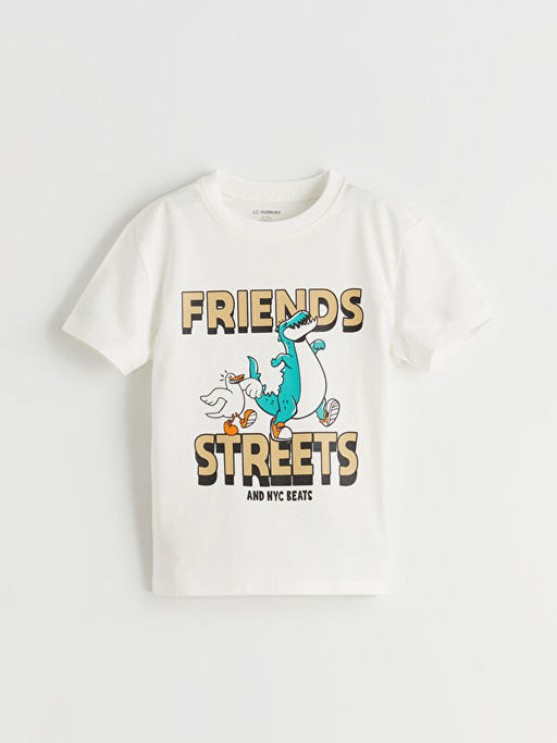 • Regular Fit Bask?l? Erkek ?ocuk Ti??rt