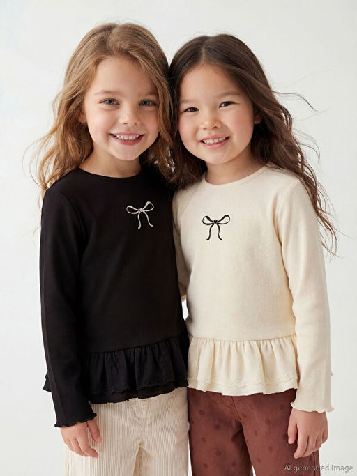Bisiklet Yaka Fiyonk Detayl? K?z ?ocuk Ti??rt 2li