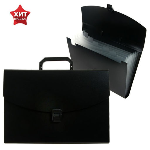 Папка-портфель А4 Calligrata, 6 отделений, 700 мкм, до 300 листов, чёрная