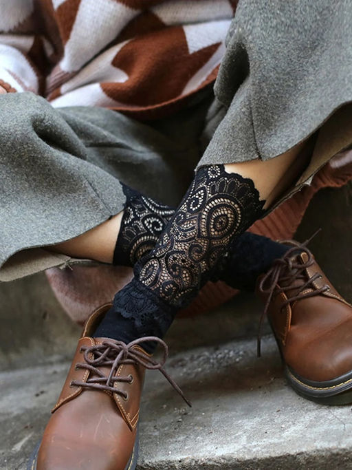 Фантазийные носки из натурального материала, декорированные кружевом. Мягкая, комфортная резинка плотно облегает ногу, не сдавливая ее. Такие носки станут изюминкой вашего образа и подойдут для любого случая и настроения.