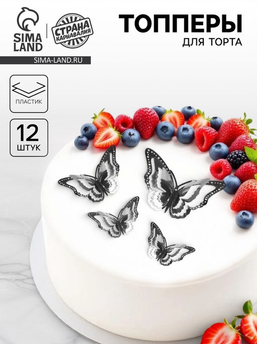 Набор для украшения «Бабочки» подойдёт для декорирования интерьерных композиций, букетов или тортов. Такие украшения можно разместить на стенах, полках или использоваться в качестве центрального элемента стола.Декор легко крепится к любой чистой сухой и гладкой поверхности. Например, к окрашенной или оклеенной обоями стене, стеклу, керамической плитке, металлу, пластику.Особенности набора для украшенияБабочки изготовлены из пластика.В комплекте 12 двусторонних липучек.Размер большой бабочки: 12 × 8,8 см.Размер средней бабочки: 10 × 7,2 см.Размер маленькой бабочки: 8 × 5,8 см.Как пользоваться наборомСнимите защитный слой с липучки и приклейте её к бабочке.Прижмите бабочку к поверхности, чтобы зафиксировать.Для создания 3D-эффекта крылья бабочек нужно согнуть под углом 35°. Набор: Да. Тематика праздника: Универсальная тематика. Бесплатная доставка: Да. Размеры товара: 15/0.5/10.