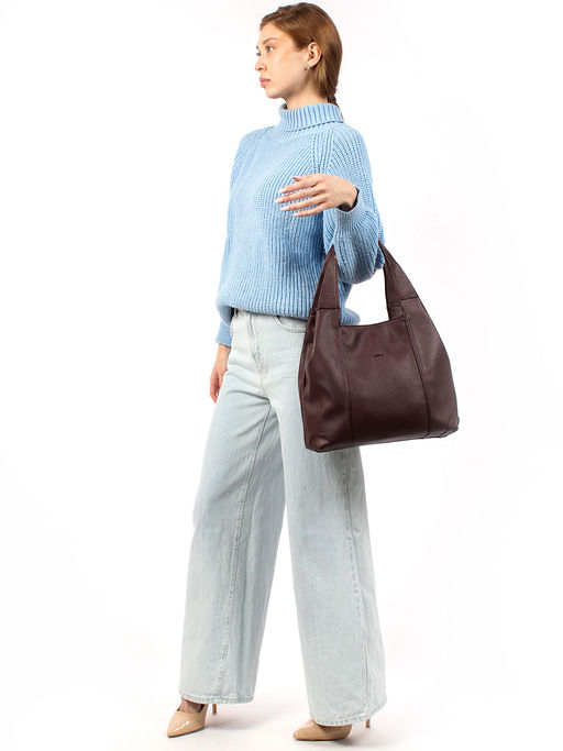 Сумка женская выполнена из экокожи. Детали: 2 ручки на плечо по 52 см. Внутри изделия: 2 отделения разделены перегородкой в виде кармана для документов на молнии, 1 открытый карман, 1 карман для мобильного телефона, 1 карман на молнии. Снаружи изделия: 1 карман на оборотной стороне на молнии. Брендированная подкладка из хлопка. Металлическая брендированная фурнитура серебристого цвета. В комплекте фирменный пыльник.­