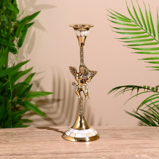 Подсвечник Амур, 25.5 см, латунь, перламутр