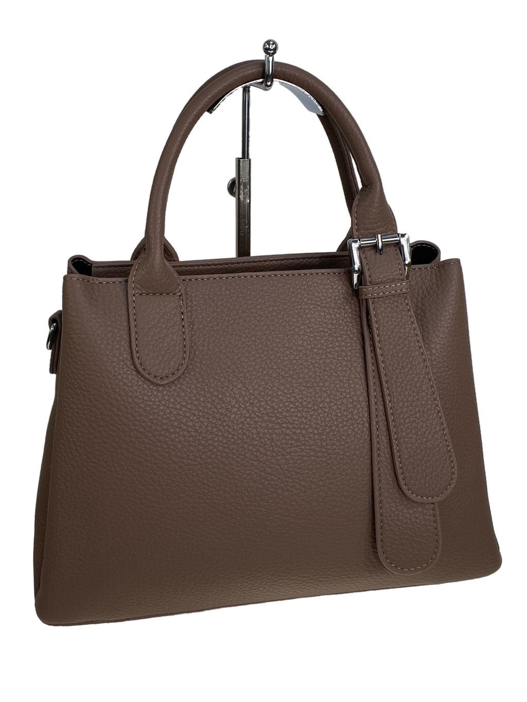 Элегантная женская сумочка из фактурной искусственной кожи. В комплекте пара удобных ручек и плечевой ремень, позволит носить сумочку в любом положении, и на плечо,и через плечо, и на запястье, и на локтевом сгибе и в руках. Сумка закрывается на молнию, внутри три открытых отделения, дополнительный карман на молнии и открытый карман. На дне сумки ножки.­