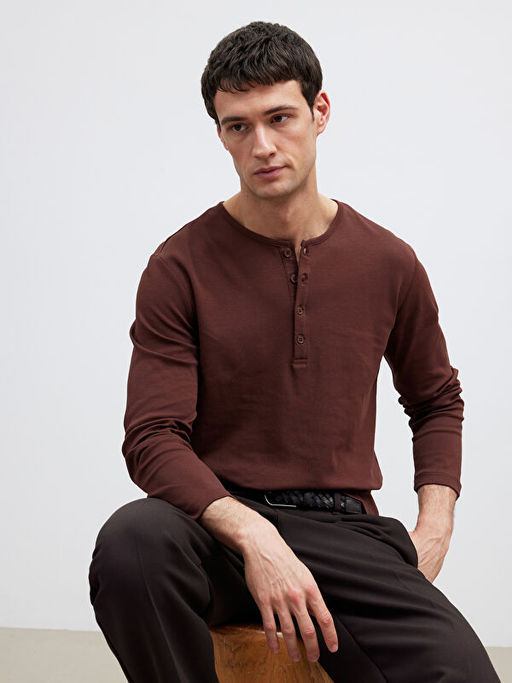 D??meli Bisiklet Yaka Yaka Uzun Kollu Erkek Ti??rt
