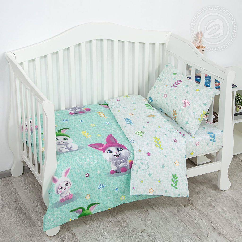 Милаш детское постельное белье с зайчиками из поплина. Перед нами красочная и волшебная картина с очаровательными героями. На полянке, среди цветов и трав, маленькие и пушистые зайчата с разноцветными ушками.