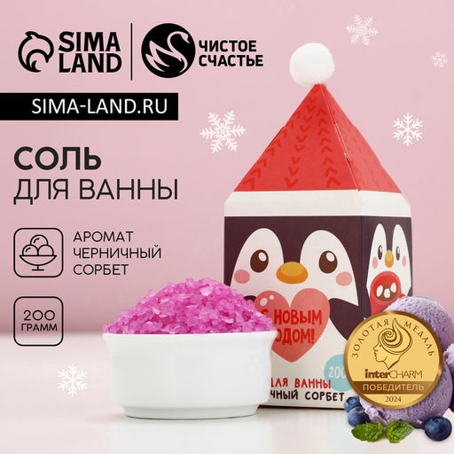 • Соль для ванны «С Новым годом», 200 г, аромат черничный сорбет, Чистое счастье