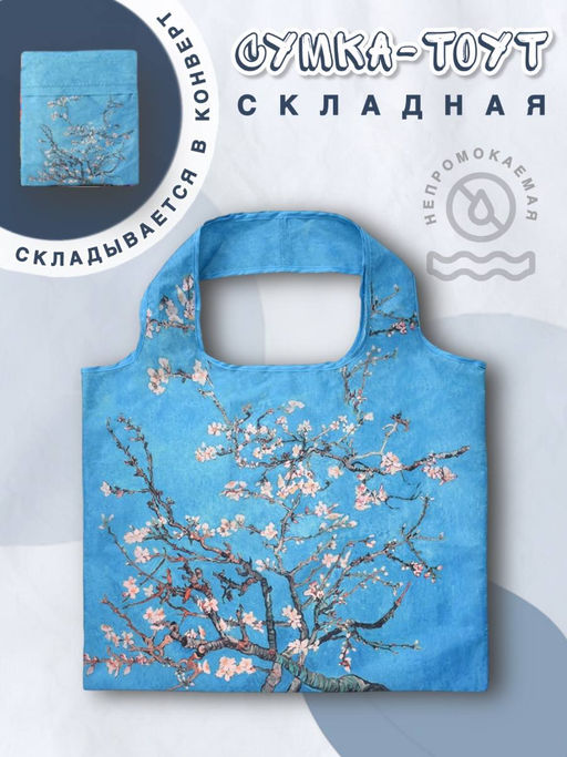 Складная сумка-тоут для покупок "Миндальная ветка", р-р 50х40см/26см