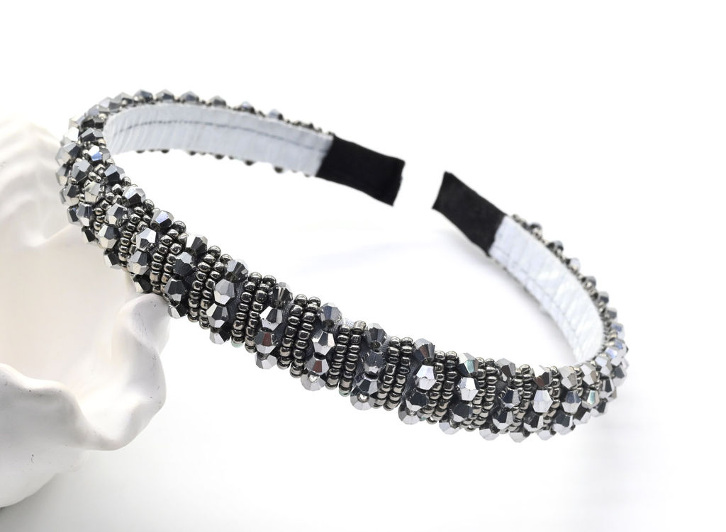 Тонкий ободок для волос украшенный цирконами в ювелирной огранке.
