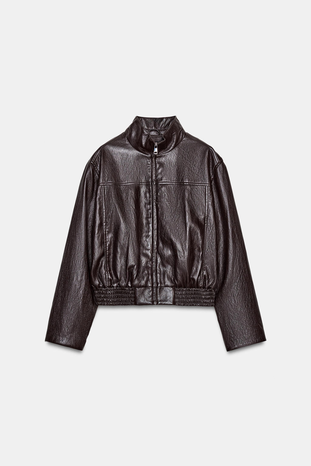 • CHAQUETA BOMBER CORTA EFECTO PIEL / Marr?n oscuro