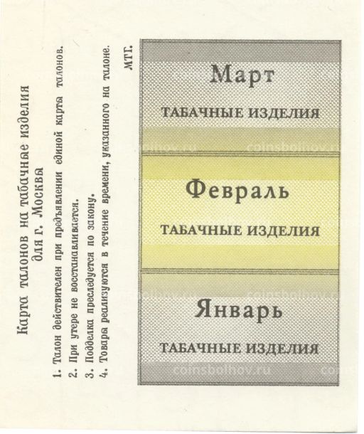 • Банкнота Талоны на табачные изделия город Москва