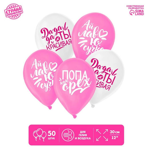• Воздушные шары латексные 12" «Хвалебные для подруги», 50 шт., 18+