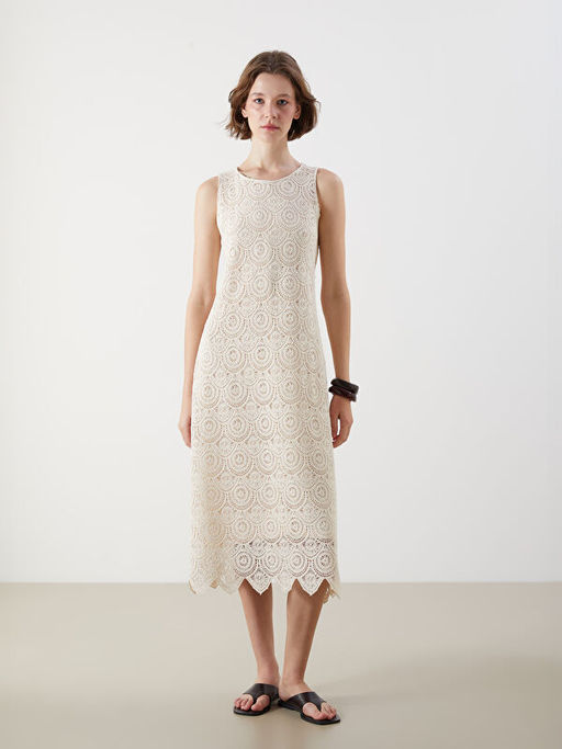 Bisiklet Yaka Dantelli Kro?e Elbise