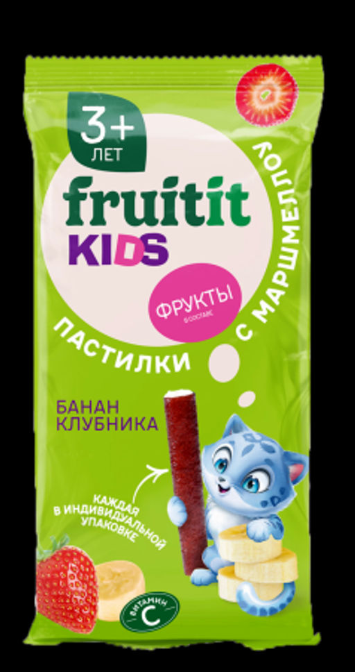 • Цена за 5шт FRUIT IT KIDS Пастилки с маршмеллоу Клубника+Банан 1/45 (10) 3+