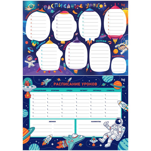 • Цена за 5 шт. Расписание уроков с расписанием звонков А4 "Пиши-стирай. Космос" (367885, "BG")