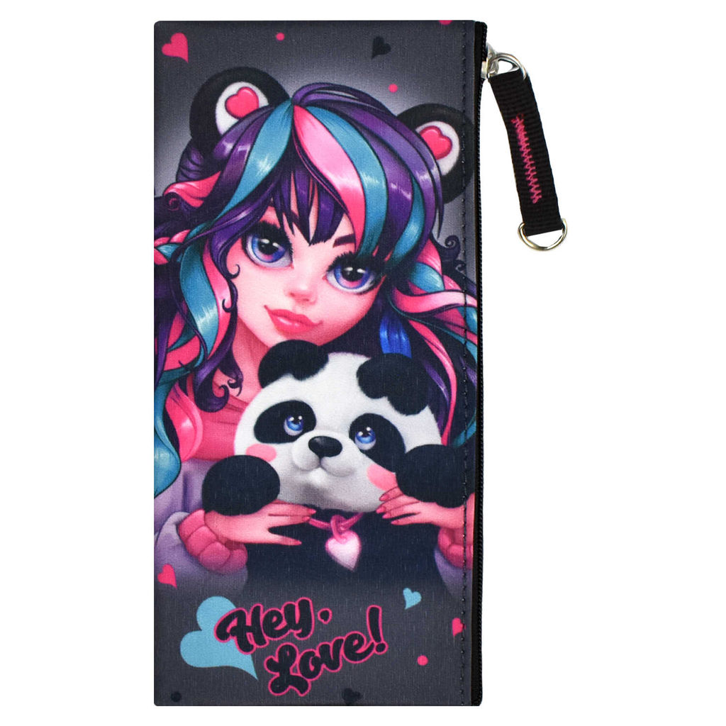 Пенал школьный Феникс+, арт.65282/ 30 ДЕВУШКА С ПАНДОЙ (без наполнения, 19.5х9 см, микрофибра на ПВХ-основе, молния, сублимационная печать, ПЭТ-пакет).