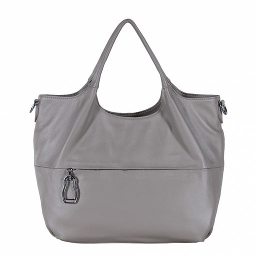 Вместительная сумка, выполнена из натуральной кожи. Декорирована брелоком на "собачке". Дополнена  серебристой фурнитурой. Данная модель закрывается на молнию. Каркас мягкий. Носится на плече. В комплекте имеется съёмный плечевой ремень с регулировкой длины. Или в руке за встроенные ручки.