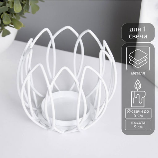 • Металлический подсвечник на 1 свечу Цветок Магнолии, белый, d=5 см, 10.5?10.5?9 см