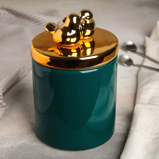 • Банка керамическая для сыпучих продуктов «Золотое крыло», 1 л, цвет зелёный