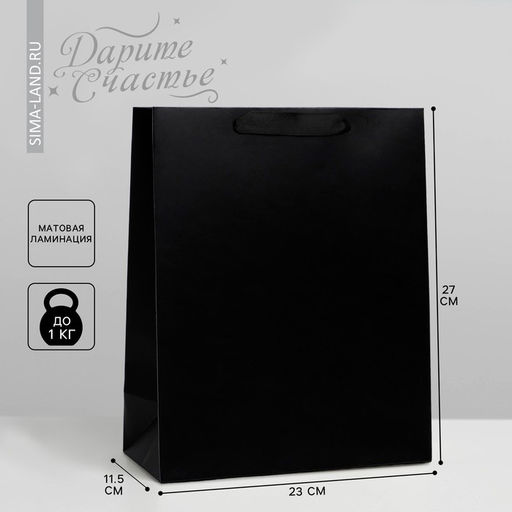 Пакет подарочный ламинированный, упаковка, «Чёрный», ML 23×27×11.5 см