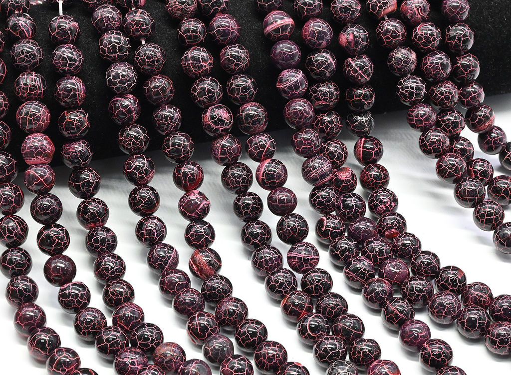 • Бусины из агата "Вены Дракона" шарик 10мм цв.бордовый, 35см, 38 бусин Радуга камня