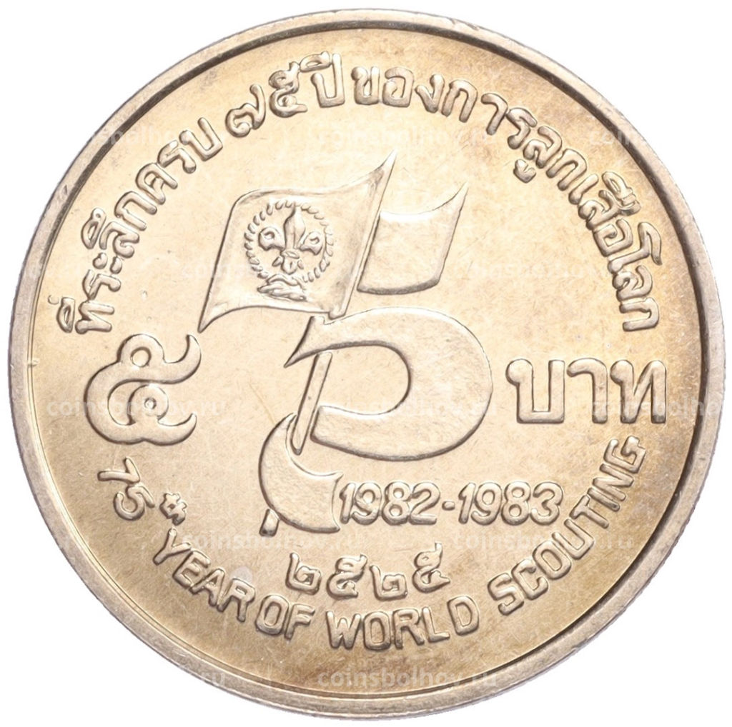 • Монета 5 бат 1982 года Таиланд 75 лет бойскаутам