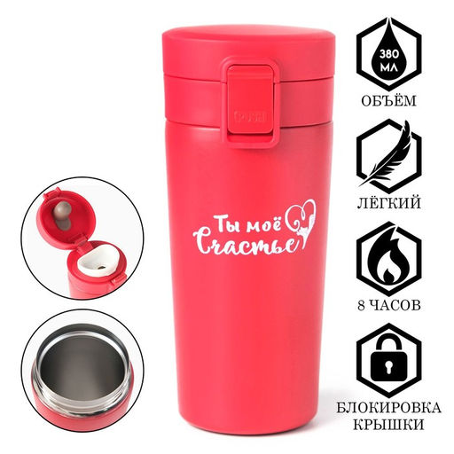 • Термокружка Ты моё счастье, 380 мл, сохраняет тепло 8 ч., с ситечком