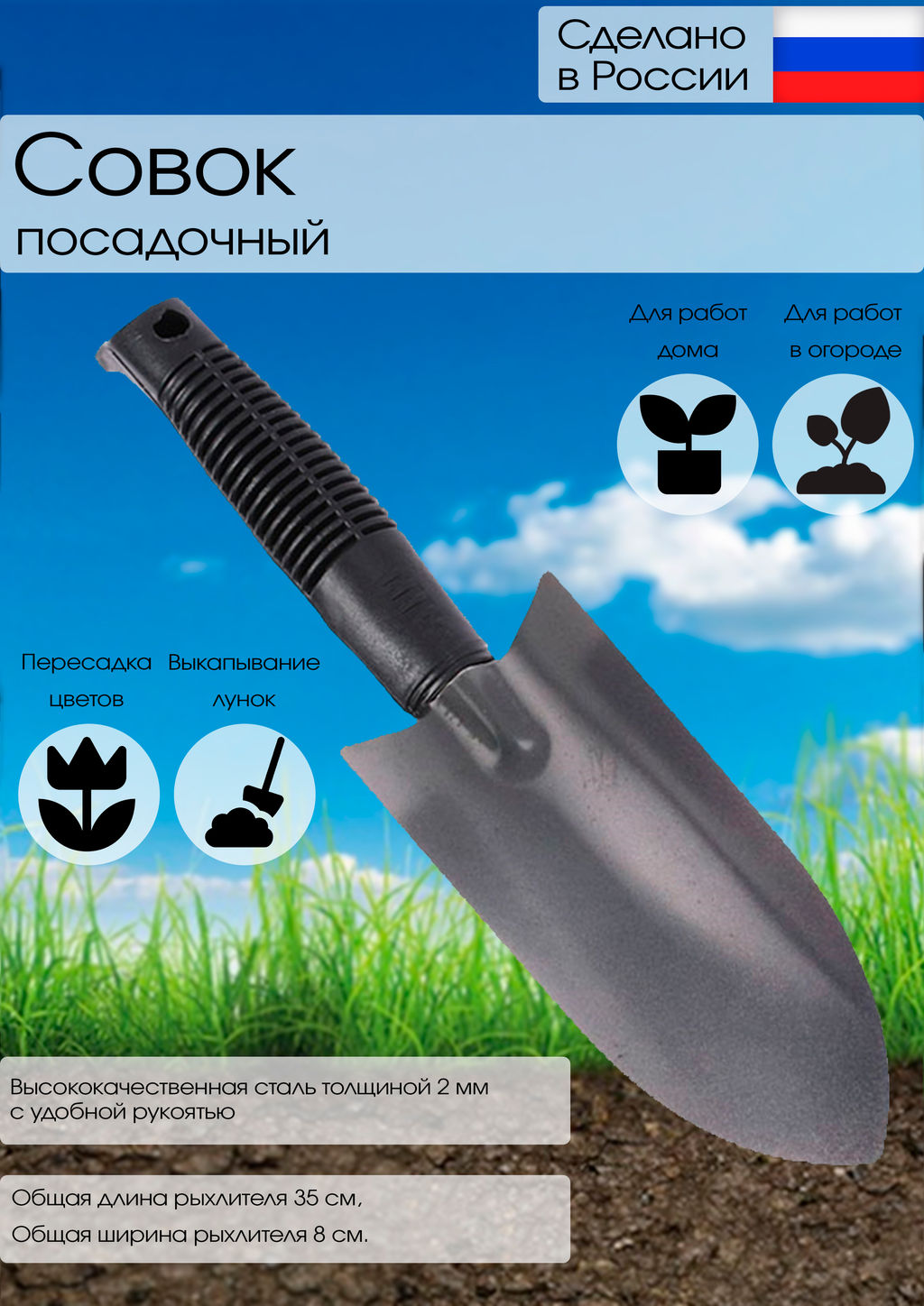 Совок посадочный предназначен для рыхления почвы, окучивания, уничтожения сорняков и ухода за рассадой, цветочными и овощными растениями.­
