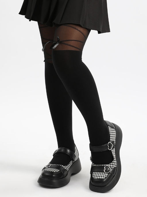 Легкие, капроновые колготки, с имитацией гольфин и рисунком "полоски", декорированные атласными бантиками. Модель прекрасно подойдет как для торжественных мероприятий, так и для повседневного образа.