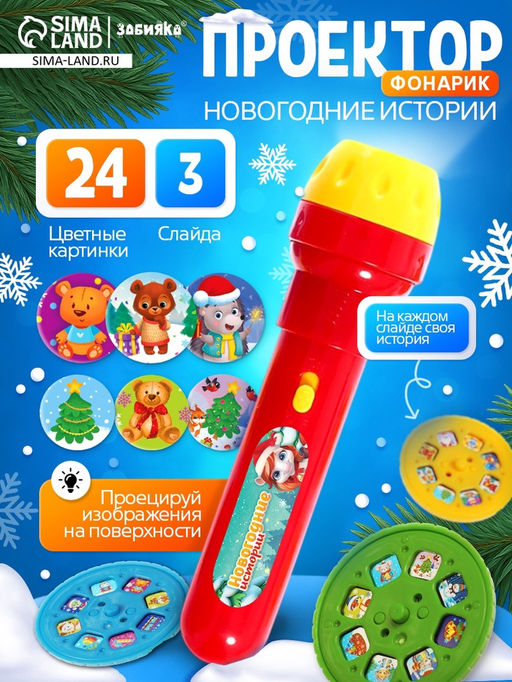 Проектор - фонарик «Новогодние истории. Лошадь», 3 слайда, свет