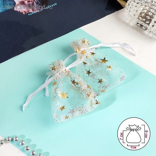 Цена за 40 шт. Мешочек подарочный «Звёздочки», 6.5×9 см, белый с золотом