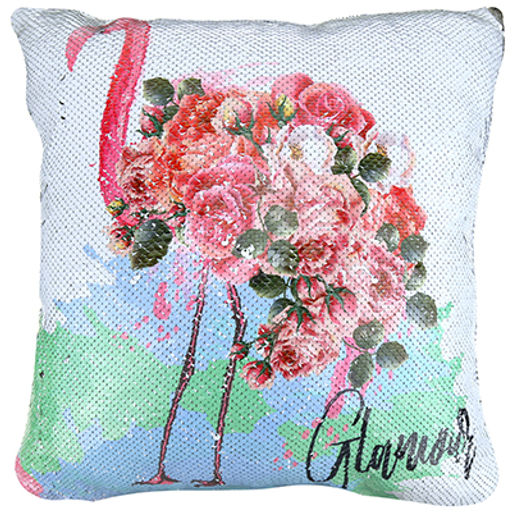 • Наволочка декоративная 39х39см "Фламинго1" рисунок/серебро, 1 сторона - пайетки-антистресс, 1 сторона - плюш, на молнии (Китай)