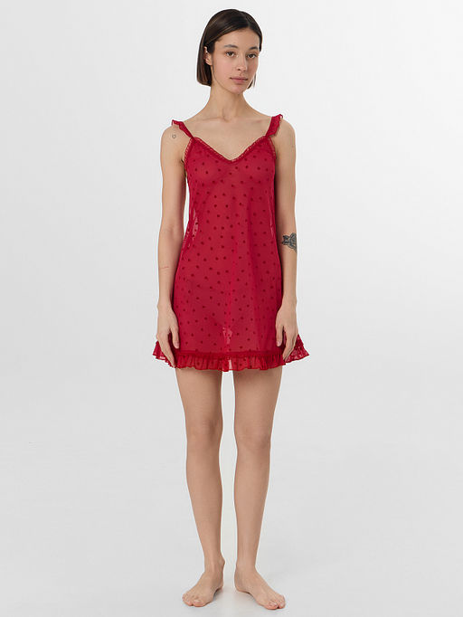 Красная ночная сорочка с принтом в сердечко это выбор для романтичного и комфортного отдыха. Она выполнена из эластичного материала, который мягко облегает фигуру, создавая уютный домашний образ.