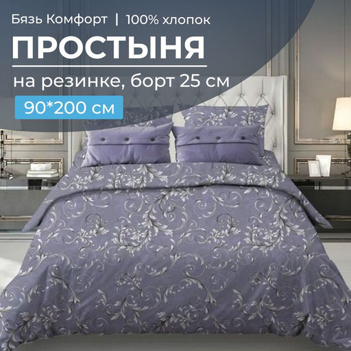 Артикул: Простыня на резинке 090*200 см, бязь "Комфорт", борт 25 см (Валенсия, сиреневый)