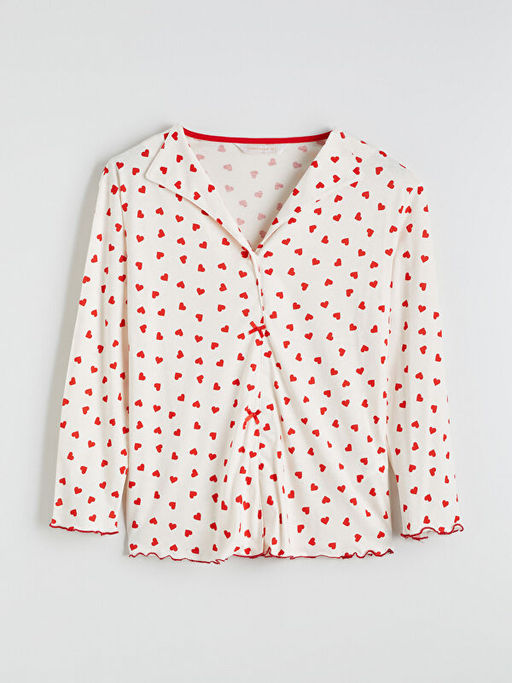 • G?mlek Yaka Kalp Bask?l? Hamile Pijama ?st?