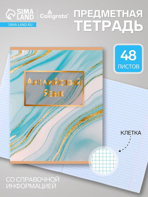 • Цена за 10 шт. Предметная тетрадь по английскому языку Calligrata «Мрамор светлый», 48 листов, в клетку, со справочным материалом, обложка из мелованного картон...