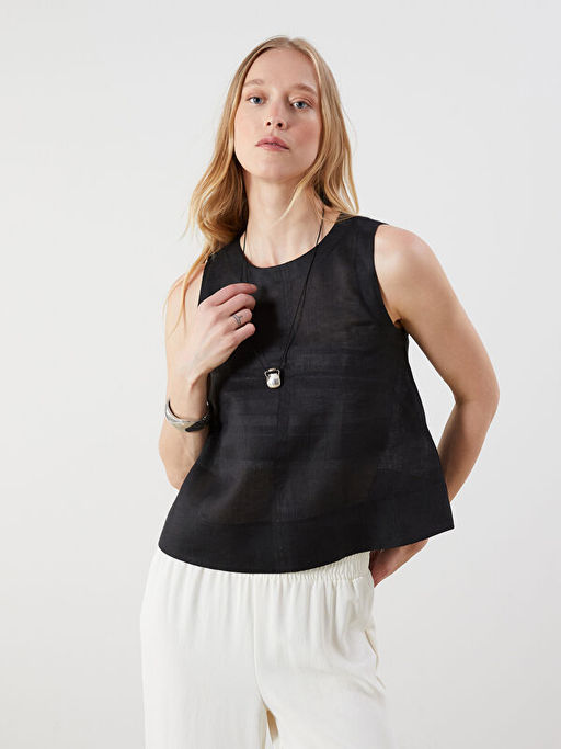 Bisiklet Yaka %100 Keten Bluz